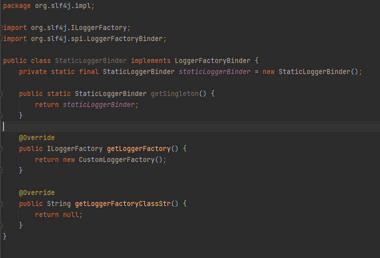 필요한 getSingleton()과 getLoggerFactory() 메서드를 구현해준다.