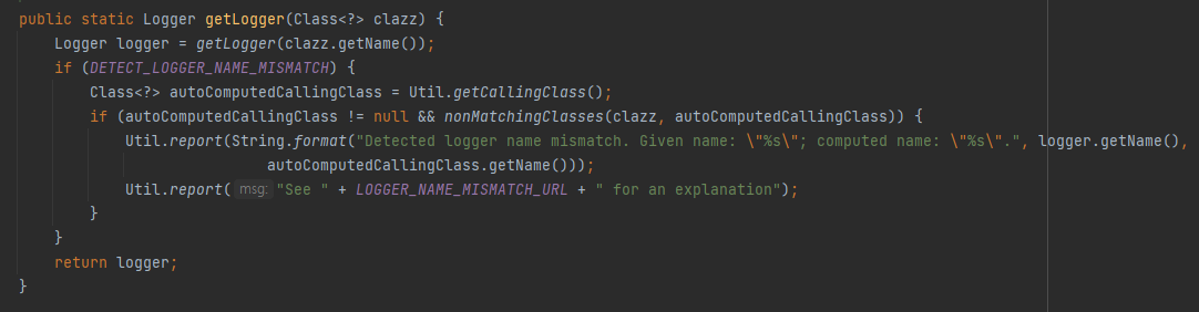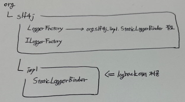 여기서 logback의 코드를 보면 실마리를 찾을 수 있다. 저 코드는 logback이나 log4j와 같은 로깅라이브러리에서 작성해서 제공해야하는 코드인 것이다.