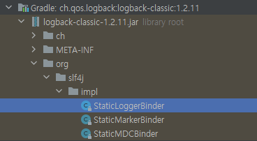 저 StaticLoggerBinder클래스는 org.slf4j.impl 패키지에 존재해야하는데, slf4j 라이브러리에는 impl패키지가 존재하지 않는다.